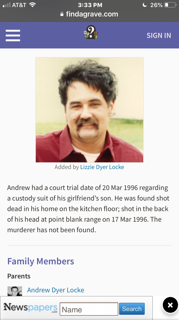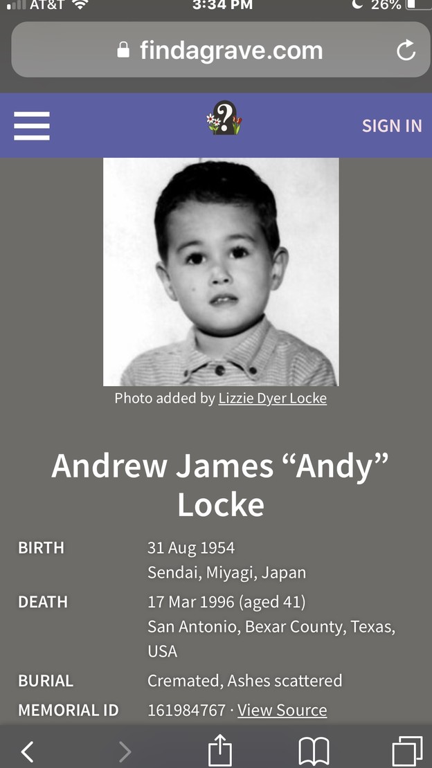 Andrews mom and my mom were friends. We lived about a block from each other. I wasn't friends with Andrew but I knew him. He had a Honda 750 and and always had money, lots of it without working. He flaunted it. It cost him his life, someone did him in. He died young. No one knows who did it. My mom continued to be friends with his mom and in their later failing years Andrews mom went to a nursing home. Sometimes I would take my mom to visit her and Mrs Locke would tell my mom "see what a good son Andrew is he goes and gets you and brings you to the nursing home to visit me" After my mom died sometimes I would visit Mrs Locke. In her failing memory she thought I was her son.